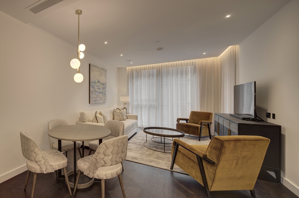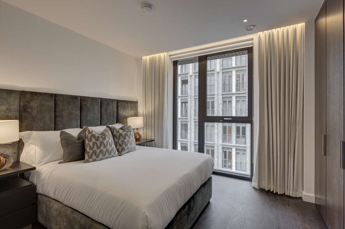An impressive interior designed 902 Sq Ft two double-bedroom, two-bathroom air-conditioned apartment located in Thornes House forming part of The Residence Collection in Nine Elms on London’s iconic South Bank.